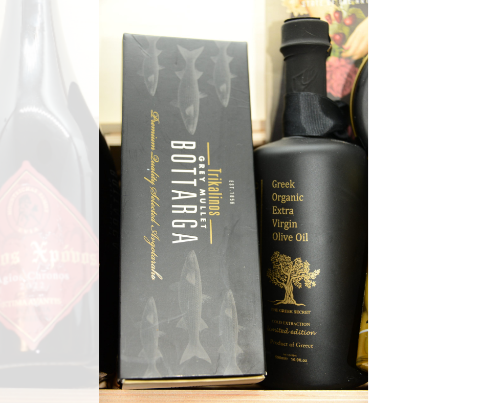măsline umplute cu feta sau jalapeno, celebrul bottarga Trikalinos, fleur de sel de calitate superioară,