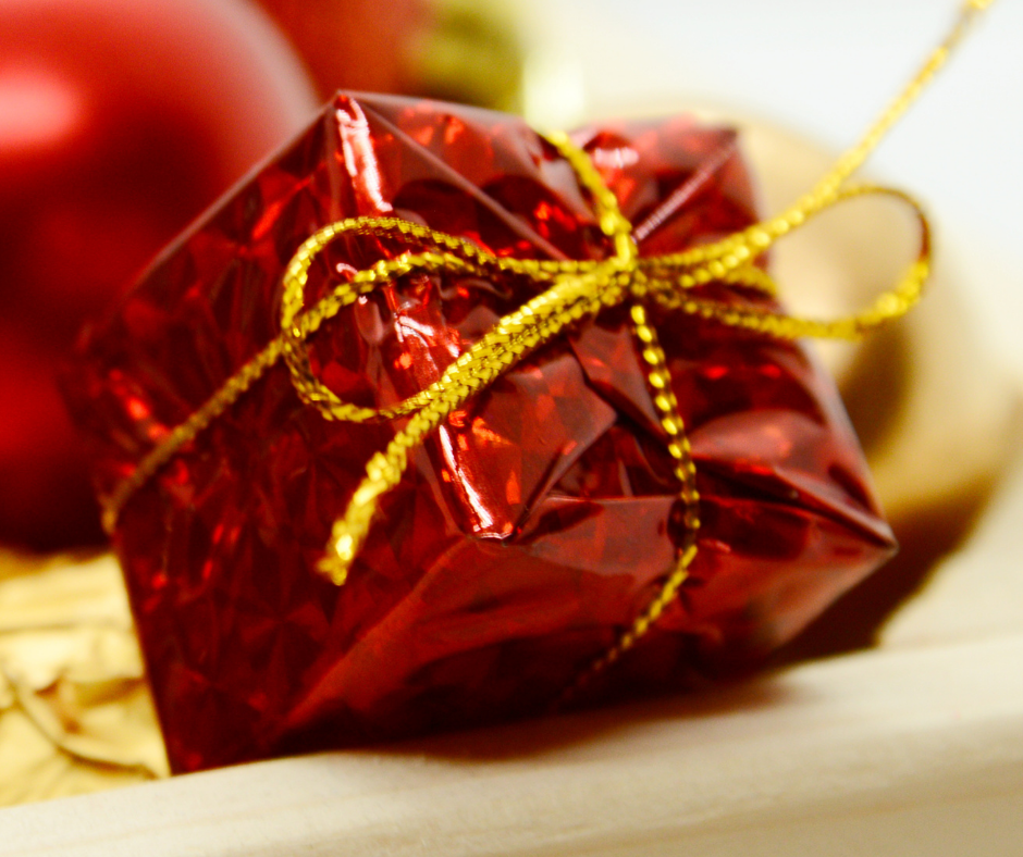 Cadoul include decorațiune de Crăciun, fundă decorativă originală și folie profesională de cadou.